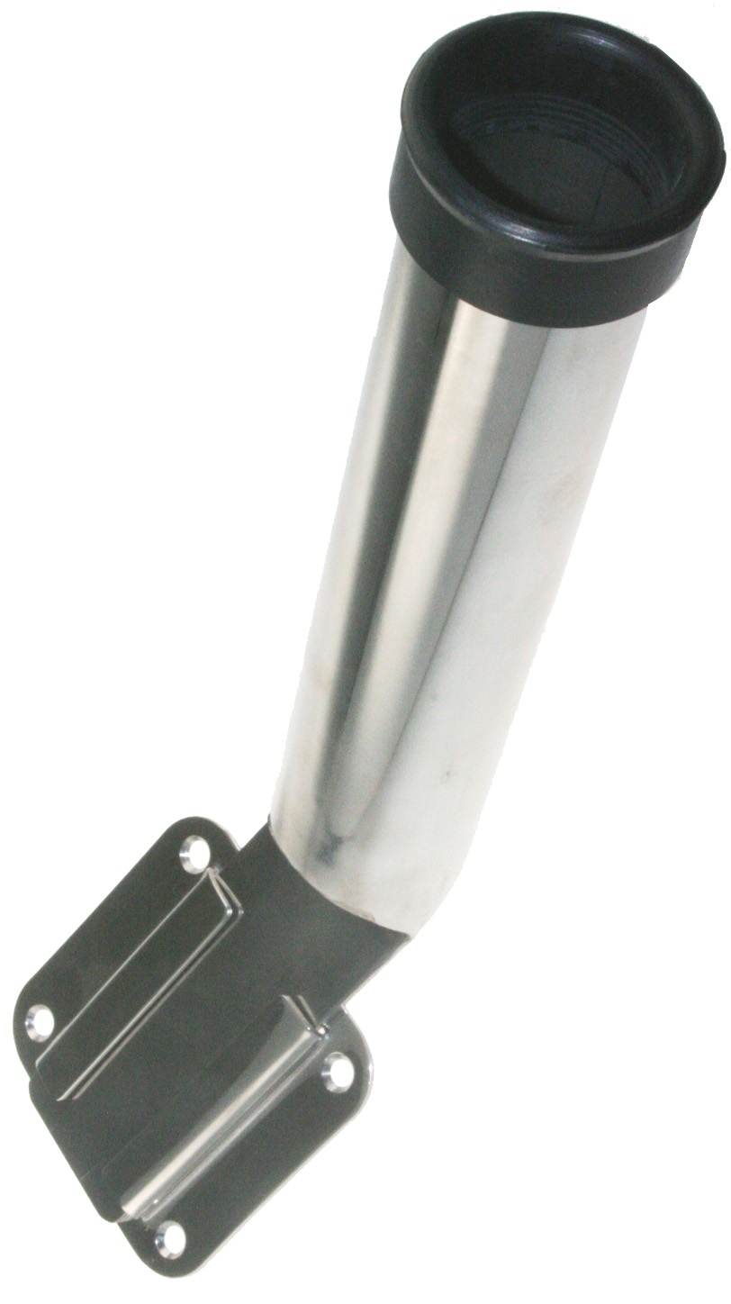 Angelrutenhalter für Decksmontage aus hochwertigem Edelstahl (AISI 316) Dieser formschöne Angelrutenhalter ist nicht nur optisch ein echter Hingucker, sondern auch extrem clever bei der Montage an Deck! Die Schiebeplatte aus Edelstahl kann durch seine 4 Bohrvorrichtungen überall an Deck befestigt werden. Der Rutenhalter kann dann ganz einfach eingesteckt und befestigt bzw. wieder entfernt werden ohne durch Schrauben oder sonstige Befestigungsmöglichkeiten gesichert werden zu müssen. Das obere Ende des Halters ist mit Gummi ausgekleidet, welches das Hin- und Herrutschen der Angelrute verhindert! Maße: Länge des Halterrohres: 220 mm Durchmesser des Angelruten-Halterohrs: 50 mm Breite der Schiebeplatte aus Edelstahl: 91mm Länge der Schiebeplatte aus Edelstahl: 91 mm