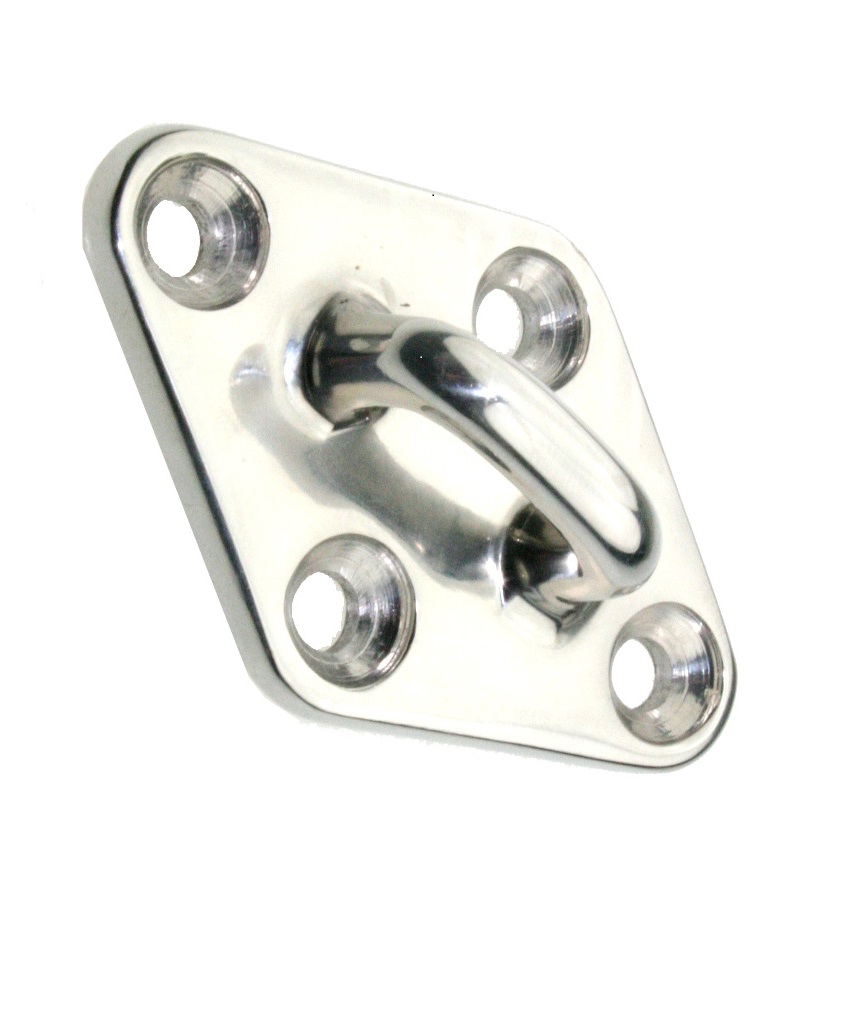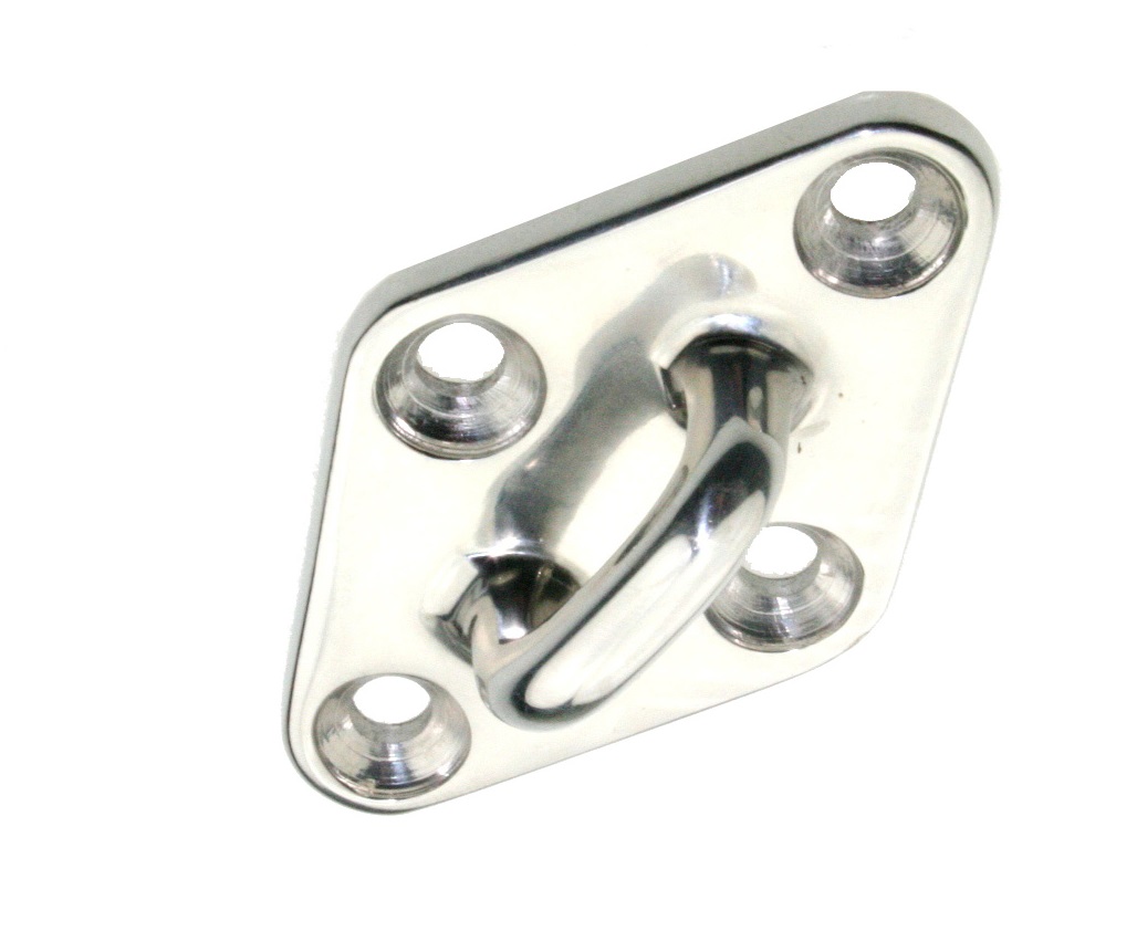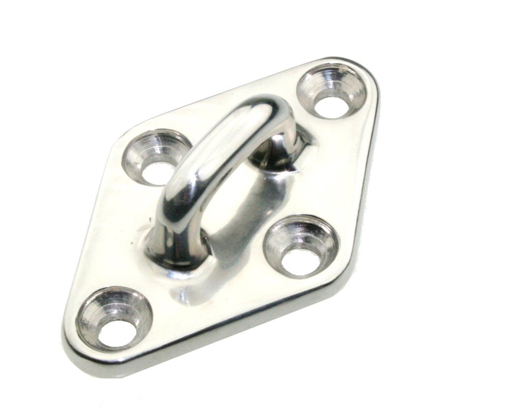 Augplatte in Rautenform aus Edelstahl (AISI 316) 80mm x 50mm Diese Augplatte ist aus hochwertigem Edelstahl AISI 316 (Seewasser und UV-Strahlen beständig) gefertigt und auf Hochglanz poliert.
