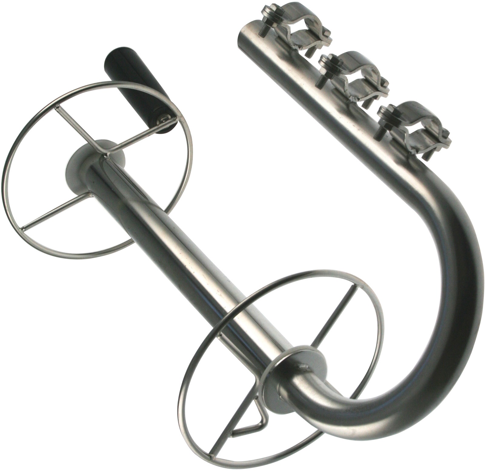 Die Leinenrolle aus poliertem Edelstahl wird senkrecht mit 3 Rohrschellen, welche für sicheren Halt sorgen, an der Reling befestigt.