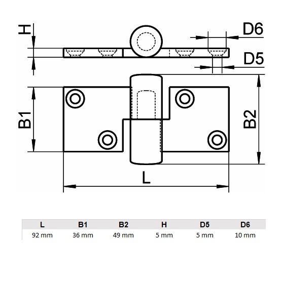 Edelstahlscharnier in bester Qualität mit hochglänzend polierter Oberfläche. Dieses Scharnier ist aus hochwertigem Edelstahl AISI 316 hergestellt und daher resistent gegen alle Wetterverhältnisse. Absolut rostfrei. Gesamtlänge: 127mm (32mm + 95mm) Breite: 65mm Stärke: 4mm Gewicht: 242g 5 Befestigungsbohrungen (Durchmesser 6mm)