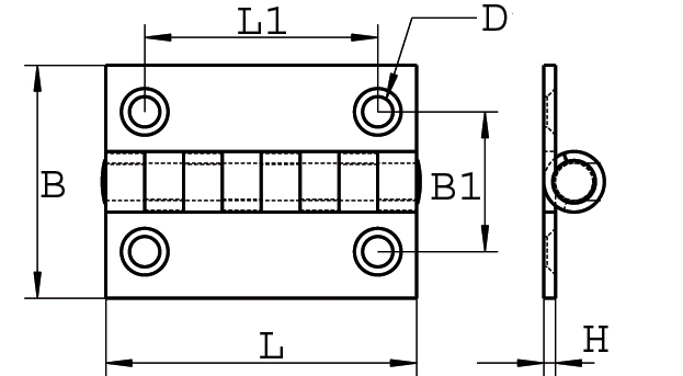 Scharnier aus hochwertigem Edelstahl AISI304 , gestanzt MaÃe L: 40 mm L1: 20mm B: 30mm B1: 20mm D: 4mm H: 1,5mm