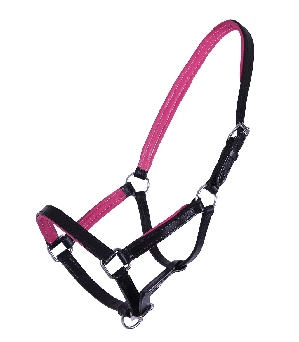An Kopf- und Backenstücken sowie dem Nasenriemen farbig unterlegt.