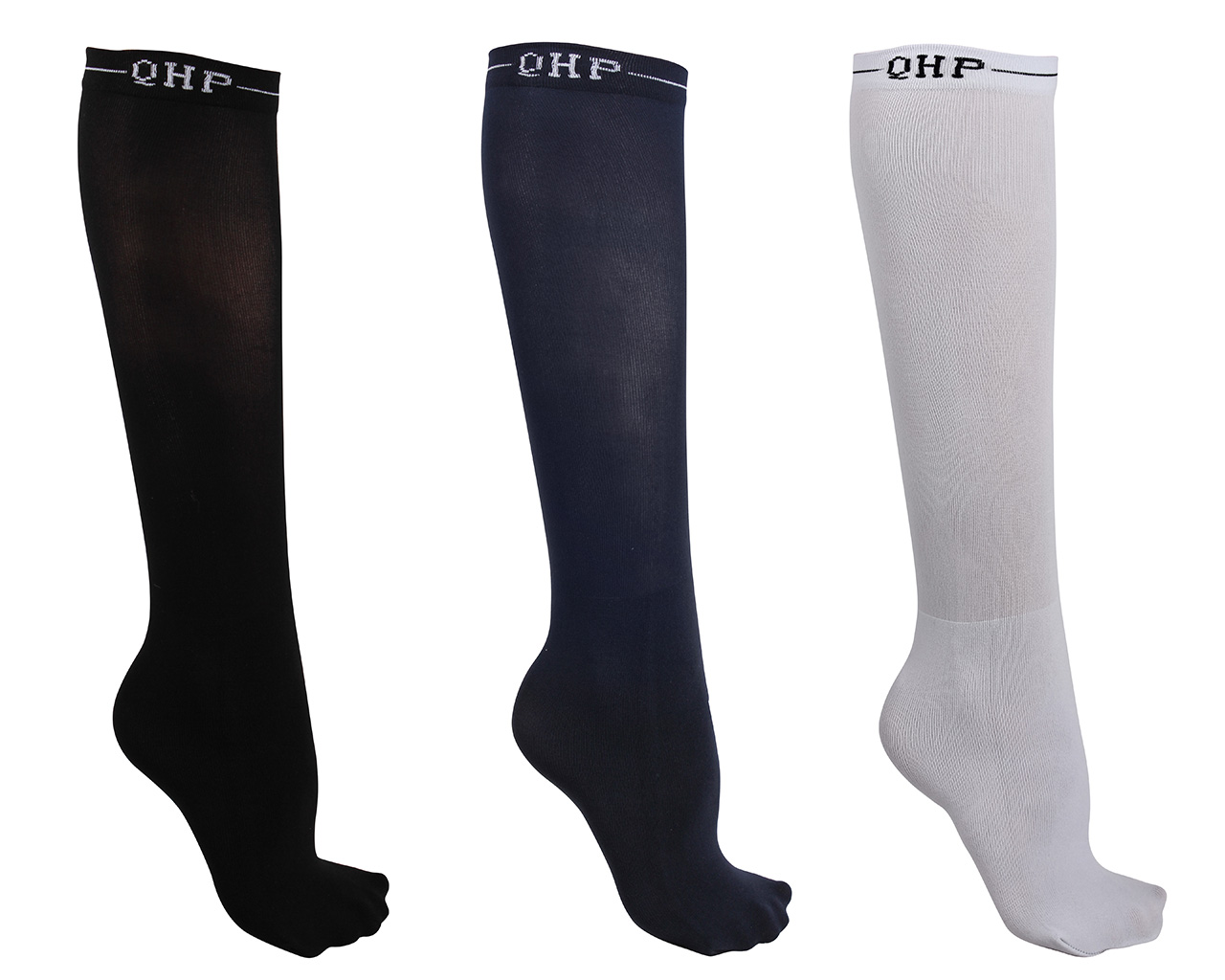 Am Bündchen sind die Reitstrümpfe mit dem QHP Label versehen.