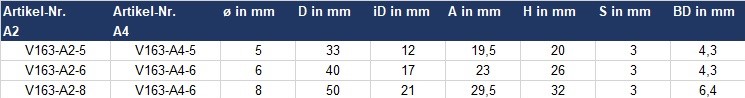 Je nach Einsatzbereich kann zwischen Edelstahl A2 und Edelstahl A4 ausgewählt werden. Ein Vorteil bei der A4 Variante ist die Salzwasser- und Säurebeständigkeit. Ist dies nicht relevant, kann auf den Edelstahl A2 zurückgegriffen werden.