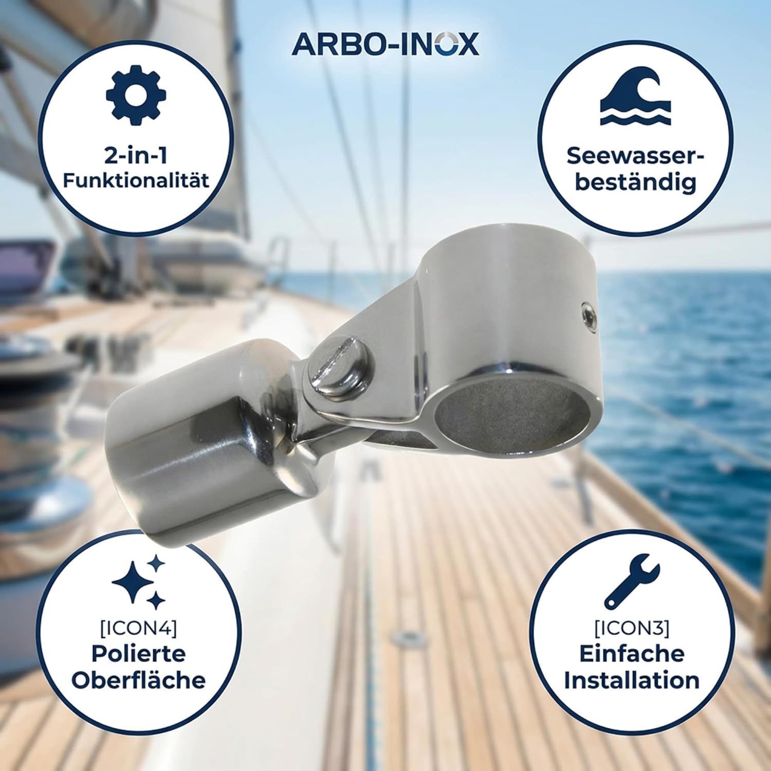Gelenkstück Rohr Sonnensegel Bimini Edelstahl 22mm ARBO-INOX