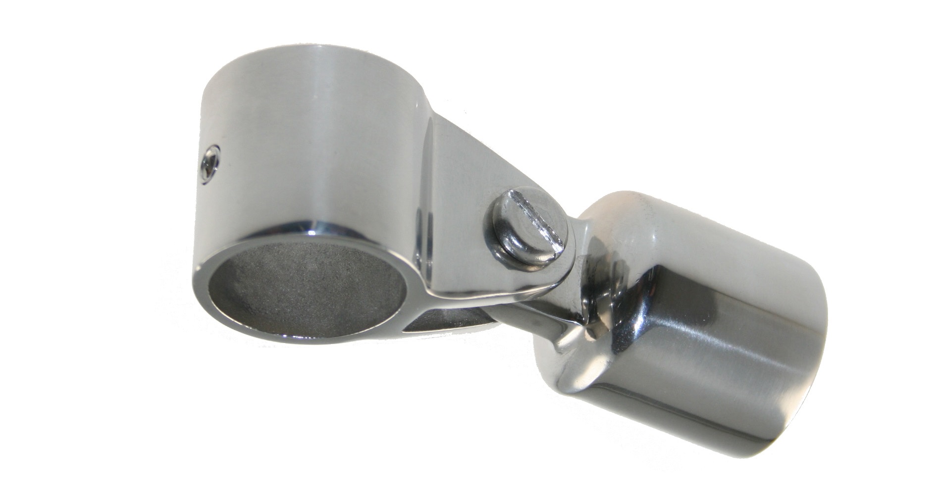 Gelenkstück für Rohr / Bimini; 22mm Das Gelenkstück ist für Rohre mit einen Durchmesser von 22 mm geeignet. Das Gelenkstück ist von hinten geschlossen, zur Sicherung dient ein Steckbolzen mit Kugelsicherung und Sicherungsring. Hergestellt aus Edelstahl (AISI 316), daher resistent gegen alle Witterungsverhältnisse!