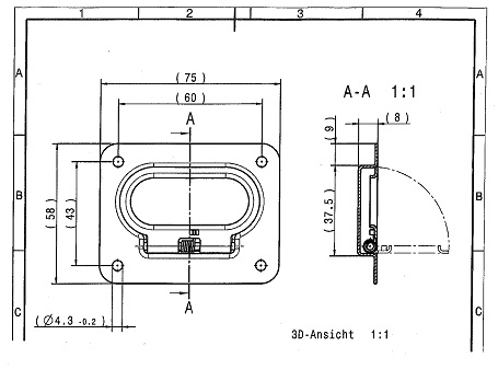 Abmessung Platte: 75x55mm Abmessung Griff: 62x35mm Bohrloch: 4mm Einbautiefe: 8 mm
