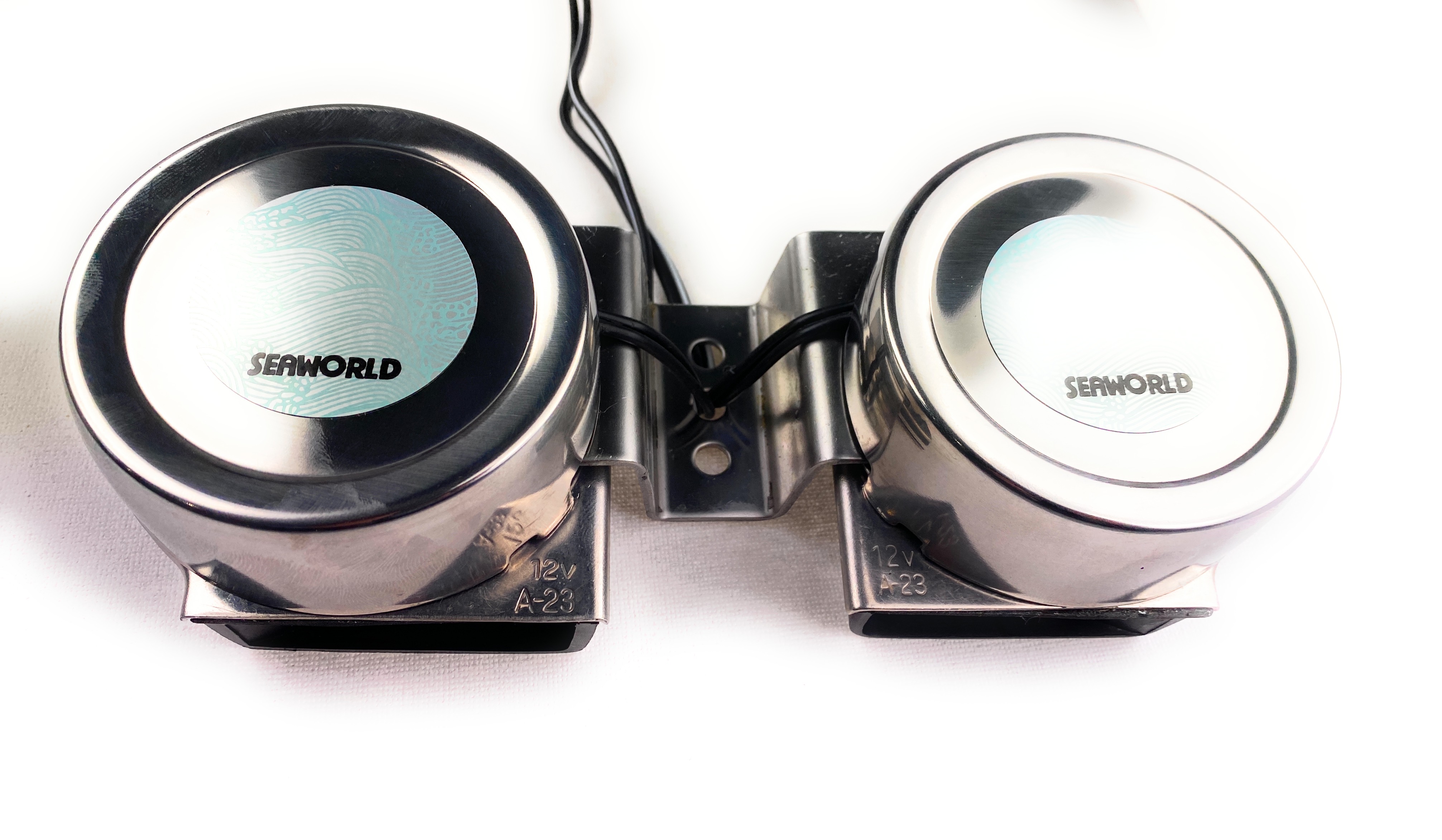 Das Gehäuse ist aus Edelstahl gefertigt, der untere Teil der Signalhörner ist aus Kunststoff hergestellt. Daten des einfachen Signalhorns: