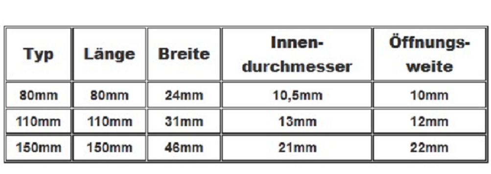 Doppelkarabiner aus hochwertigem Edelstahl AISI316 in verschiedenen Größen.