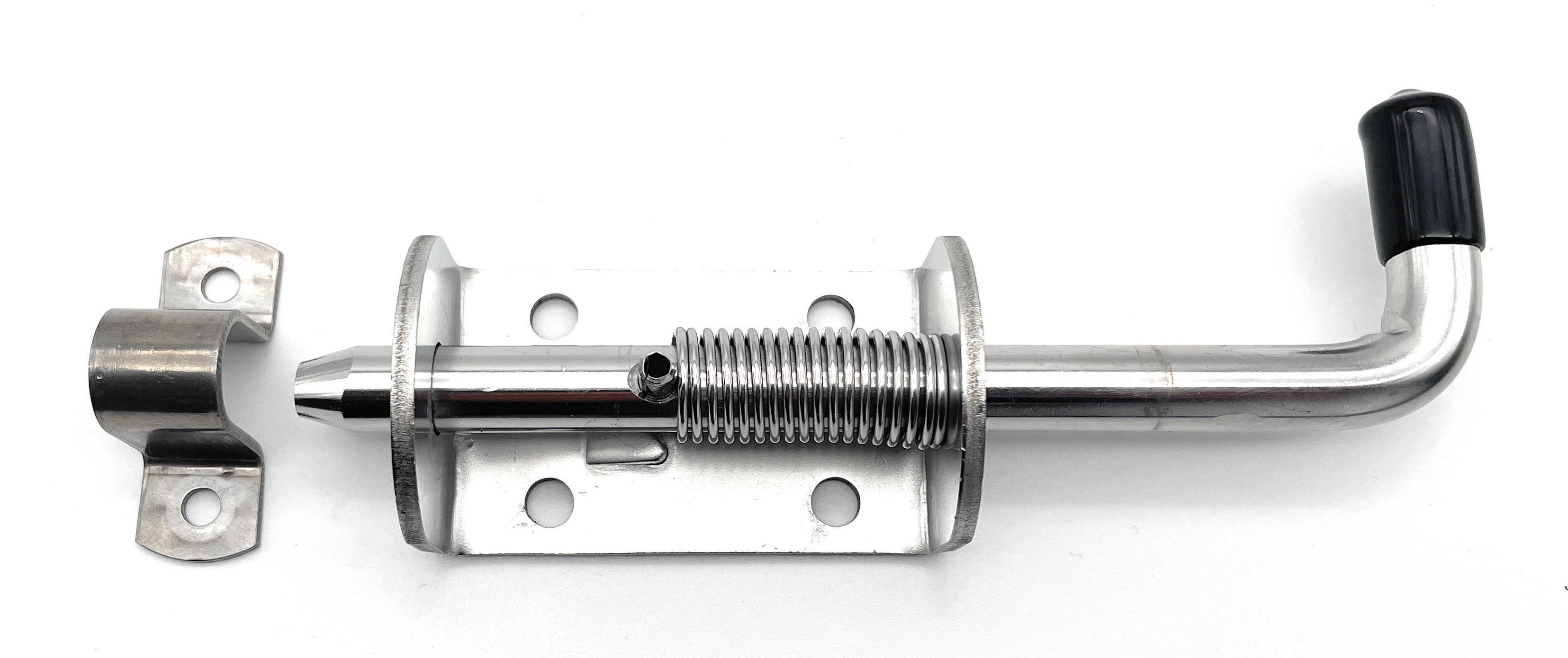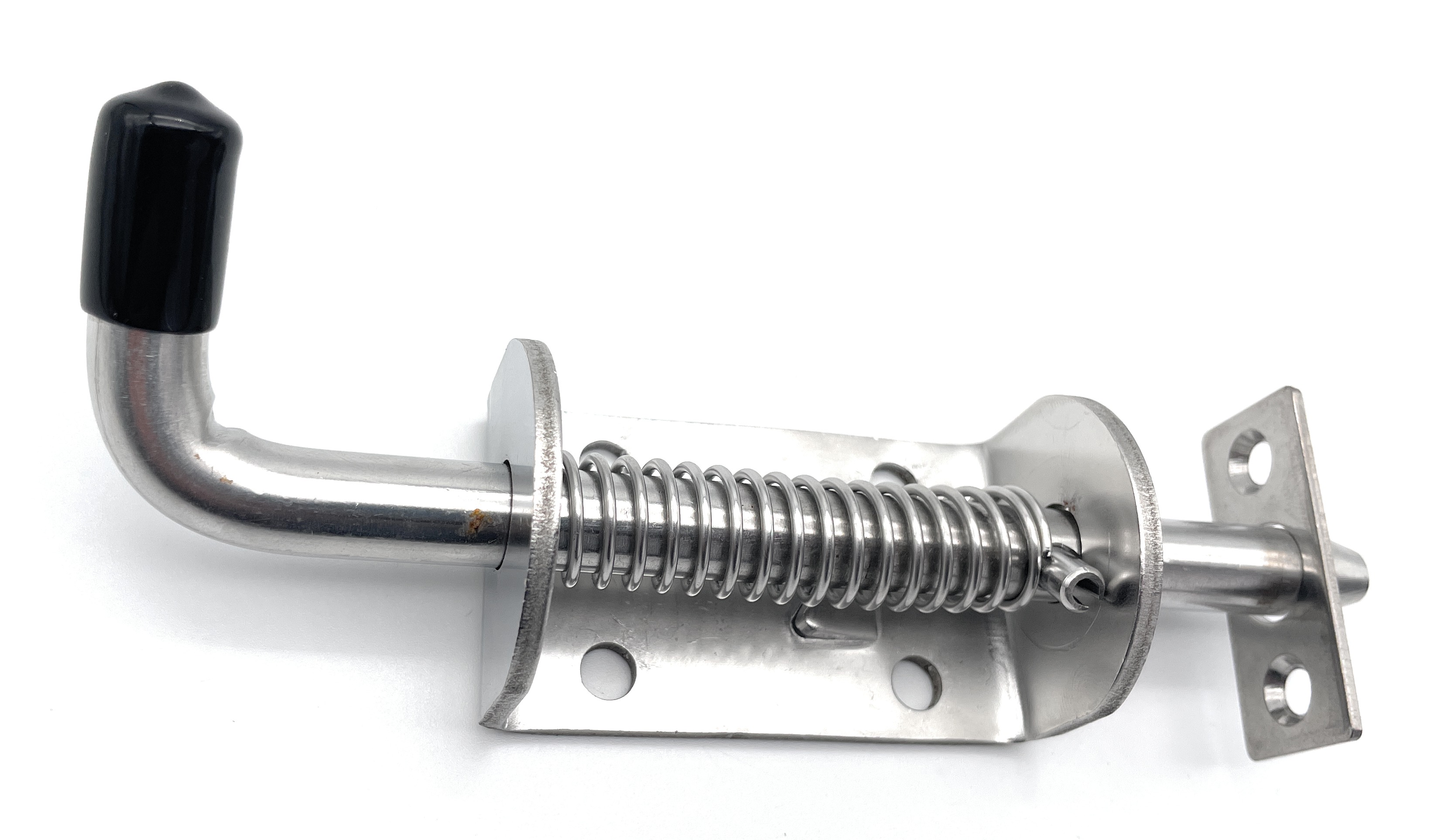 Perfekt geeignet für Stalltüren, Pferdeboxen, Türen, Möbel, Anhängertore, Gartentore und Kellertüren. Der Bolzenriegel besitzt eine Federung, welche den sicheren Gebrauch erleichtert und unterstützt. Der Gummigriff verhindert das Abrutschen mit der Hand beim Öffnen oder Schließen.