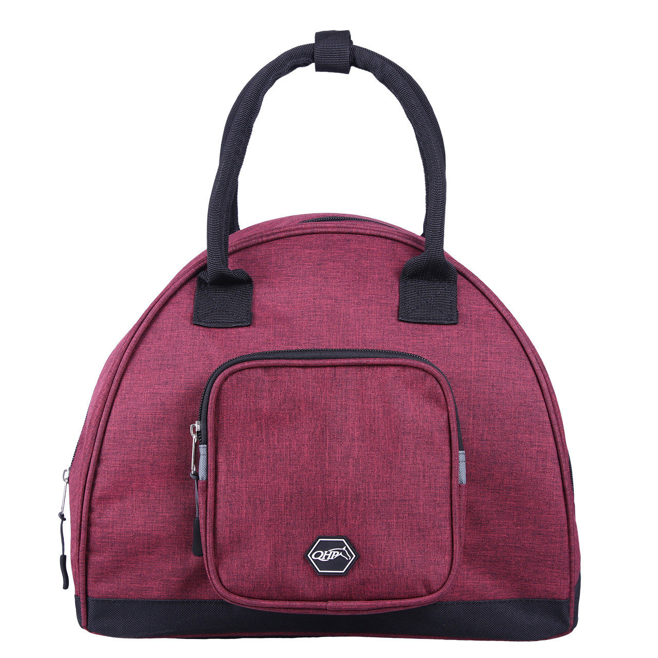 Die Tasche verfügt über ein großes Fach für den Helm sowie über eine kleinere Tasche mit Reissverschluss an der Vorderseite zum Verstauen kleinerer Gegenstände wie z. B. Snacks für Pferd oder Reiter.